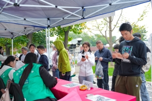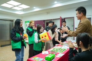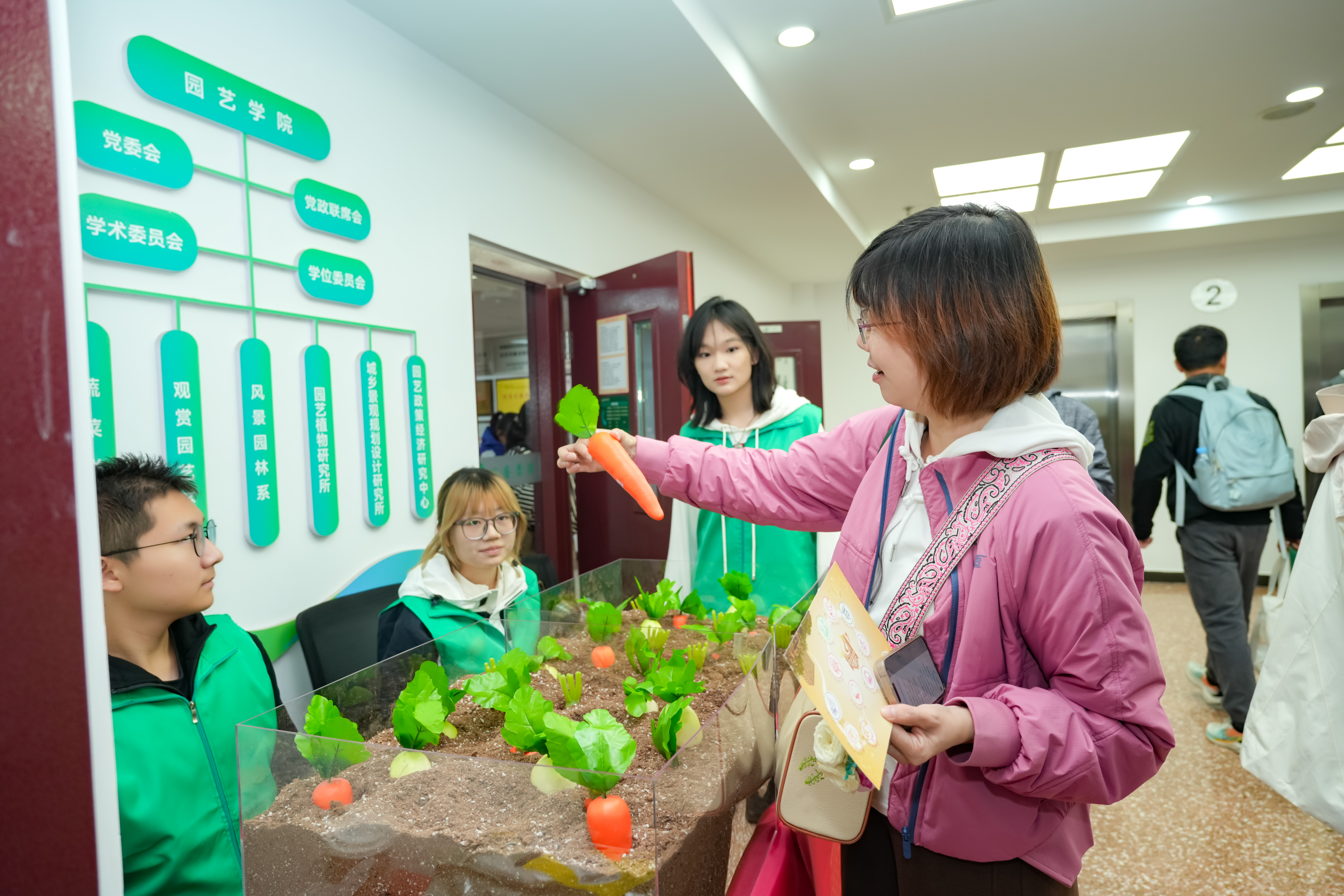 “共话园艺,同庆”。聚焦园艺学科特色,将专业成果转化为可观可感、可互动的沉浸式体验内容。这里既有学院近年在果树育种、蔬菜栽培、观赏园艺等领域的科研成果展示,也有结合专业知识设计的趣味互动项目。“中农探花”科普团队,以“花卉”为核心,通过制作自育花卉卡牌“翻翻乐”搭配海娜手绘,趣味与美感兼具,“花卉手环编制”活动更让校友们在动手间收获专属乐趣;“记忆地图绘制”和“年代拼贴画创作”,既展示了风景园林的基本功,也让体验者在色彩填充重焕生机中回顾校园岁月,满是情怀与创意;“中农识蔬”科普团队,聚焦蔬菜系特色,“植物拓印”印出独特纹理,“蔬菜探源”唤醒专业知识,“蔬菜种植微景体验”尽显设施园艺专业魅力;“黄瓜的一生”主题飞行棋活动,将植物生长知识融入游戏;位于八楼角落里的“半米阳台”,直观呈现现代家庭园艺的奇特魅力。活动在轻松有趣的氛围中感受园艺学科的实用价值与对美好生活的重要作用,众多校友在参观活动中交流了学院与学科最新发展动态,对学院发展成果的高度肯定。