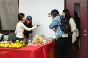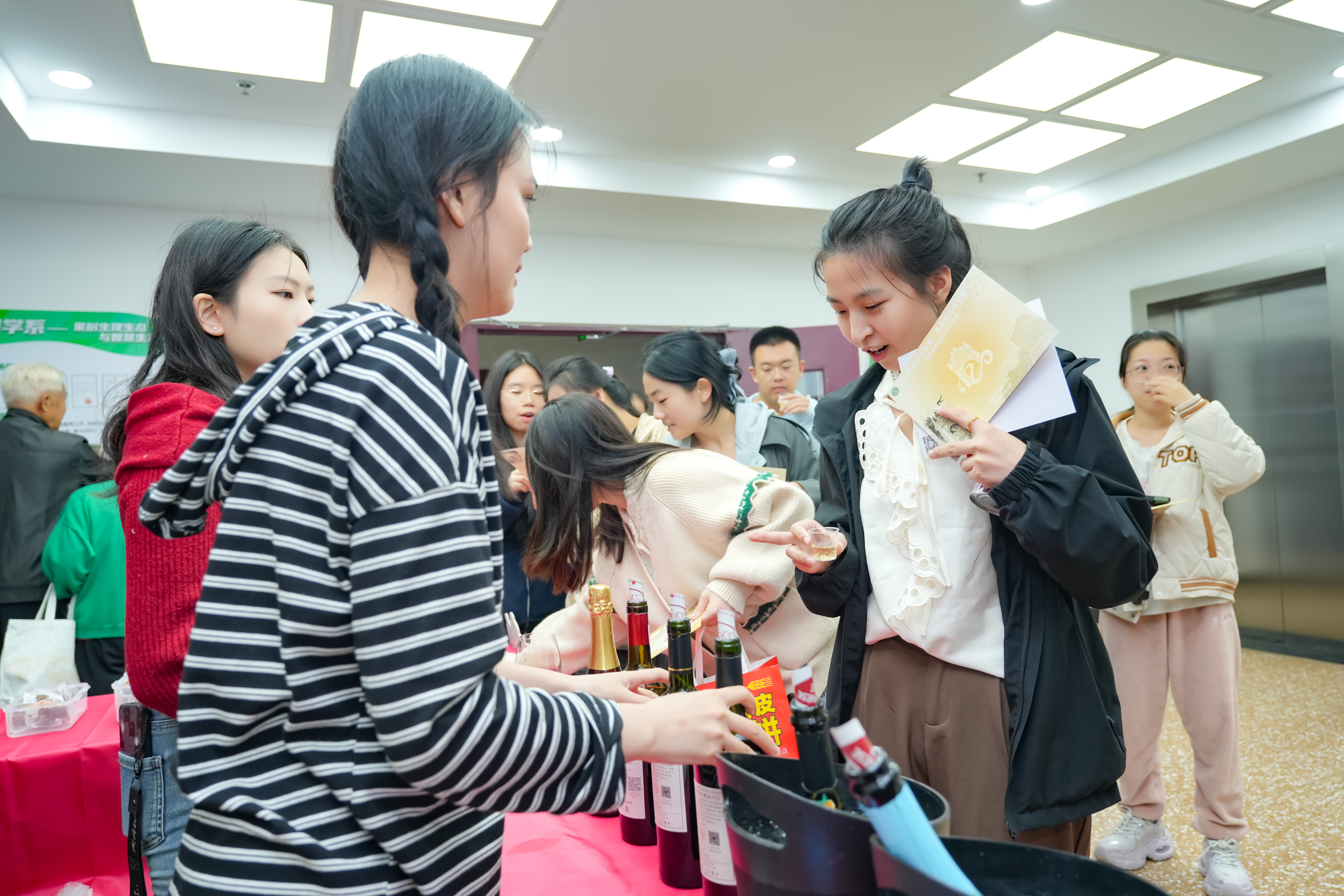 “谱写新章,展望”。活动更添了几分收获的乐趣与希望,十一楼设苹果、梨品尝区,搭配“你问我答”小游戏,味觉与记忆双重唤醒;十二楼葡萄酒品鉴与无花果产品品鉴,带来多元感官体验。师生校友一边品鉴这些“园艺成果”,一边交流产品研发、市场推广等话题,部分校友还就农产品产业链延伸等问题展开探讨,祝福母校与学院事业发展蒸蒸日上。