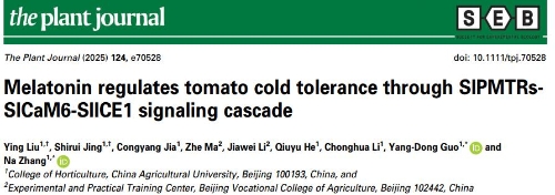 在番茄设施生产中,低温是冬季与早春季节最关键的限制因素。低温直接导致成苗质量差、整齐度低,延误最佳定植期,同时额外补苗、加温也会显著推高生产成本。因此,克服低温胁迫是实现番茄设施安全生产与效益提升的核心环节。继今年初在《Advanced Science》上发表褪黑素在番茄中的受体鉴定成果后,太阳成集团tyc33455郭仰东研究团队近日在知名期刊《The Plant Journal》上发表了题为“Melatonin regulates tomato cold tolerance through SIPMTRs-SICaM6-SIICE1 signaling cascade” 的研究论文。该研究系统阐明了褪黑素通过“SIPMTRs–SICaM6–SIICE1”信号级联通路参与番茄的耐冷性调控,不仅加深了对褪黑素作为信号分子作用机制的认识,也为提高蔬菜冬季育苗质量提供了重要指导。