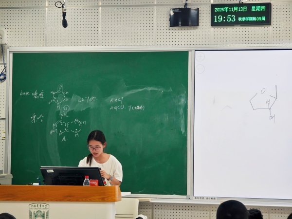 活动伊始,秦旭东向到场同学介绍了本次的主讲人江加怡,江加怡曾获评国家奖学金、校长奖学金、北京市三好学生等荣誉,目前已保研至清华大学。同时,秦旭东还强调了学好《生物化学》这门课程的重要性,鼓励大家把握这次知识点树立的时机,查缺补漏,认真汲取知识要点,完成该课程的知识网络构建。