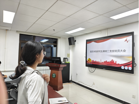 2025年9月3日上午,果树学系研究生第二党支部组织党员集中观看中国人民抗日战争暨世界反法西斯战争胜利80周年阅兵仪式直播。活动由党支部书记蒲梅清主持,十余名党员和入党积极分子参加观看。观看活动在园艺楼205会议室举行。