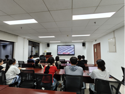 党支部书记蒲梅清最后总结:“这次集中观看活动既是一堂生动的爱国主义教育课,也是一次深刻的精神洗礼。希望大家牢记历史、珍惜现在、奋斗未来,将爱国情怀融入日常科研学习中,为强国建设贡献青春力量。参会党员纷纷表示,将把从阅兵式中汲取的力量转化为推动科研进步的强大动力,把论文写在祖国大地上。