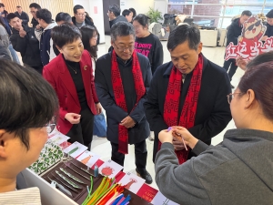 学校党委书记钟登华、校长陈卫来到活动现场,亲切看望慰问学院留校师生,并向大家送上马年新春祝福。钟书记、陈校长详细了解来自学院教授工作站、科技小院等产出的苹果、草莓、番茄及花卉等师生科研成果,与师生互动参与“自育花卉品种卡牌翻翻乐”科普互动、“菊花茶品鉴”体验活动及“一蔬一世界”蔬菜种植微景观沉浸式实践活动,勉励师生矢志强农报国,深耕园艺科技创新和服务产业民生,为农业农村现代化贡献更多园艺力量。