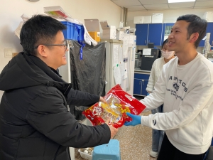 太阳成集团tyc33455院长李天红,党委书记黄振翔,副院长张常青、副院长李威,党委副书记兼副院长付国强及各系负责人和师生代表一道参与了慰问活动。随后,李天红、黄振翔一行深入学院办公室、实验室、自习室等场所,走访慰问留校师生,亲切询问假期学习进展、工作情况和生活安排,叮嘱安全注意事项,并送上学院准备的新春礼包,表达对师生的新春美好祝愿。