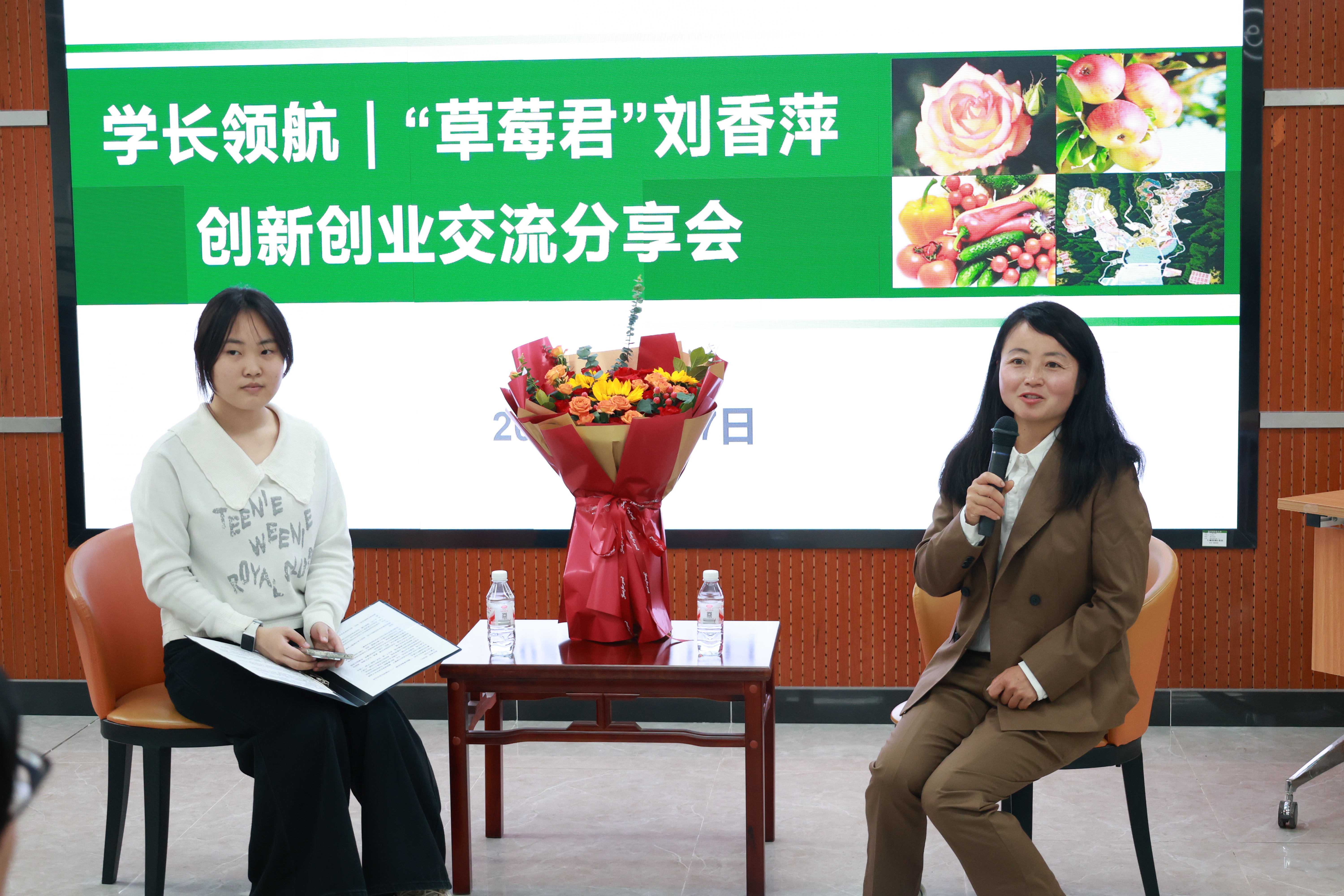 在创业交流环节,同学们围绕创业项目选择、技术难题攻克、团队管理、市场拓展等方面积极提问。刘香萍结合自身实践经验一一耐心解答,分享了自己在品种优化、标准化生产、商业模式创新等方面的心得,并针对大学生创新创业比赛提出了具体建议,鼓励同学们立足专业优势,从小处着手,注重实践积累,脚踏实地走好创业之路。