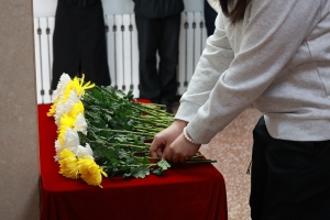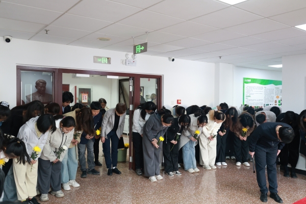 最后,全体师生依次向沈隽先生铜像敬献鲜花,一枝枝淡雅的菊花,寄托着无尽的哀思,也承载着郑重的承诺,仪式在静默的瞻仰中结束,充满了对先贤的深切缅怀与崇高敬意。